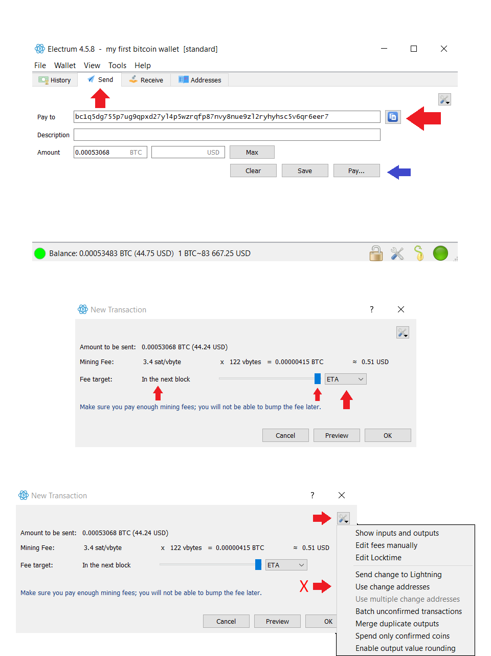 WARNING: Never manually type the exchange’s address into Electrum. Always copy the address using the “Copy” button next to the address box on the exchange’s website, and then paste it using the “Paste” button next to the address field in Electrum. Always double-check the characters after pasting. If you type the address manually, you might enter it wrong and send your bitcoins to the wrong address — with no way to get them back (Image-7).