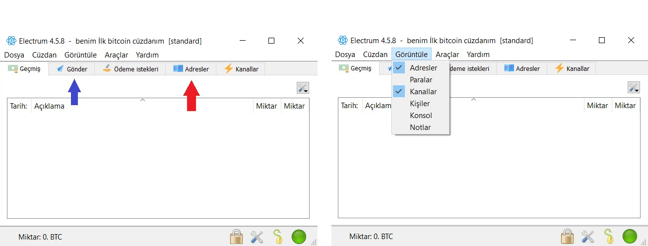 Electrum programı İngilizce dilinde geliştirildiği ve Türkçe çevirisi henüz tamamlanmamış olduğu için bazı kısımlar İngilizce olabilir. Ancak İngilizce olsa da önemli noktaları adım adım açıklayacağım.